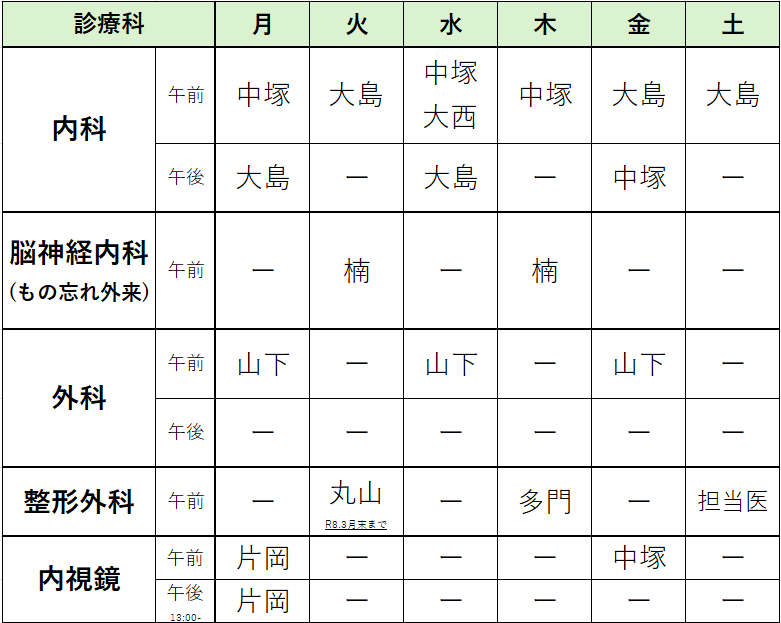 外来担当表 令和8年3月~